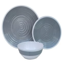 Outdoor Revolution Premium 12pc Melamine Plate And Bowl Set Pastel Grey
